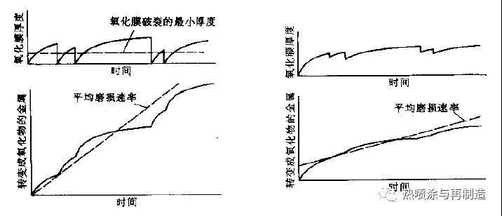 圖1 脆性膜的氧化磨損示意圖 圖2 韌性膜的氧化磨損示意圖