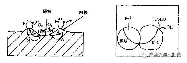 此外,磨損過程會使塑性材料表面產(chǎn)生的強烈塑性變形主要集中在犁溝兩側(cè)隆起部位或沖蝕坑的外緣,使這些部位產(chǎn)生微裂紋、位錯和空位等缺陷,具有較高的腐蝕活性成為陽極,其余部位稱為陰極,構(gòu)成“應(yīng)變差電池”。