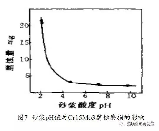 P.F.Weiser等人用CF-8鑄鐵在硫酸砂漿與單獨硫酸腐蝕和單獨濕磨料磨損條件下進行對比試驗,結(jié)果表明,材料的腐蝕磨損速度是純腐蝕和純磨損速度之和的8-35倍。