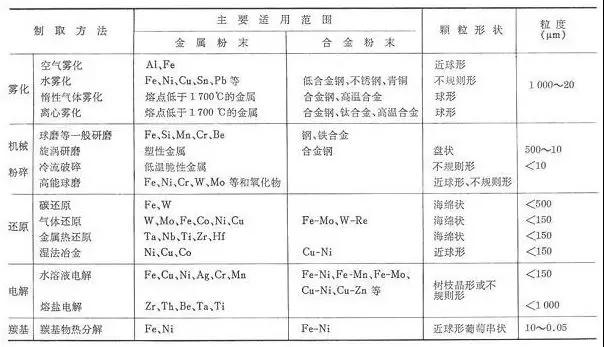 金屬粉末制取方法的特點(diǎn)和適用范圍