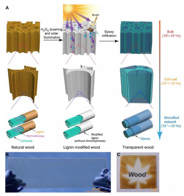 1. Sci. Adv.: 太陽(yáng)能輔助制造大規(guī)模、可構(gòu)圖的透明木材