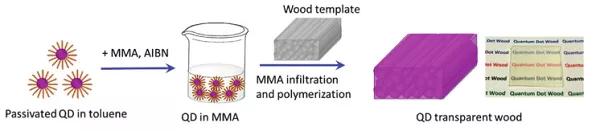 圖8 量子點(diǎn)透明木材制備示意圖。