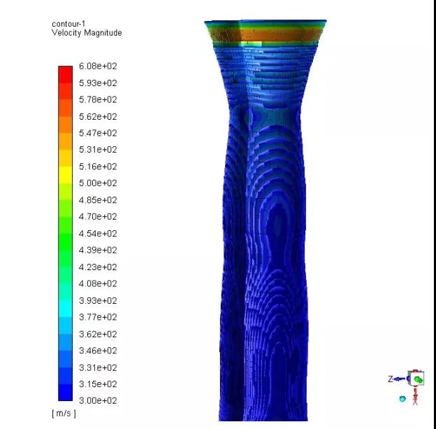 圖 2 Fluent 計(jì)算模擬的霧化流場結(jié)果(速度場)