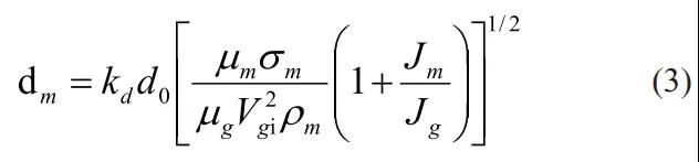 其中,dm 為粉末平均粒度,kd 為常數(shù),一般為 40-50,d0 導(dǎo)流管直徑,Jm 為液態(tài)金屬流量,Jg為氣體流量,μm 和μg 分別為液態(tài)金屬和氣體的動力黏性系數(shù),Vgi 為霧化氣流場的初始流速,σm 為液態(tài)金屬表面張力,ρm和ρg分別為液態(tài)金屬的流體密度和氣體的密度。