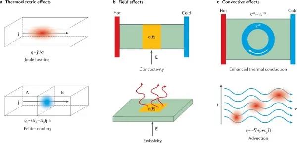 傳熱是支撐能量傳輸?shù)幕粳F(xiàn)象,通常由空間溫差引起。傳熱研究的主要關(guān)注點(diǎn)是溫度和熱流管理——將目標(biāo)加熱或冷卻到合適的溫度;以及能量收集——將熱源(如太陽(yáng))的熱能轉(zhuǎn)換為功能或其他形式的能量?,F(xiàn)如今控制熱量對(duì)于解決諸如全球變暖、能源危機(jī)和電子設(shè)備加熱等問(wèn)題尤為重要。緩解這些問(wèn)題需要先進(jìn)的工具來(lái)操縱不同長(zhǎng)度尺度上各種形式的熱傳遞。近年來(lái),材料科學(xué)和物理學(xué)的發(fā)展促進(jìn)了傳熱研究的復(fù)興。一方面,在傳統(tǒng)的加熱、冷卻和收集能源方面,新的方法正在出現(xiàn),具有更高的效率、精度、適應(yīng)性、可調(diào)性和緊湊性。另一方面,人們提出了將熱作為信息載體,并將其用于通信、探測(cè)、反探測(cè)和計(jì)算的新應(yīng)用。這些研究成果已成為導(dǎo)電熱材料、納米聲子學(xué)和遠(yuǎn)場(chǎng)和近場(chǎng)熱輻射管理等研究方向。近日,科羅拉多大學(xué)李保文教授、斯坦福大學(xué)范汕洄教授以及新加坡國(guó)立大學(xué)仇成偉教授提供了傳熱控制的統(tǒng)一觀點(diǎn),總結(jié)了利用人工結(jié)構(gòu)操縱物理參數(shù)和實(shí)現(xiàn)前所未有的傳熱現(xiàn)象的互補(bǔ)范例。本文分三個(gè)部分對(duì)熱流控制的三大類(lèi)進(jìn)行了綜述。第一部分和第二部分著重討論了宏觀和微觀尺度下的熱傳導(dǎo)和熱輻射。第三部分討論了在傳導(dǎo)、輻射和對(duì)流中積極引入熱源或調(diào)整具有多重物理效應(yīng)的材料參數(shù)的努力。最后,作者分析了這一研究領(lǐng)域面臨的挑戰(zhàn),探討了可能的新方向,特別是拓?fù)錈嵝?yīng)、熱波和量子熱效應(yīng)。該綜述近日以題為“Transforming heat transfer with thermal metamaterials and devices”發(fā)表在知名綜述Nature Reviews Materials上。