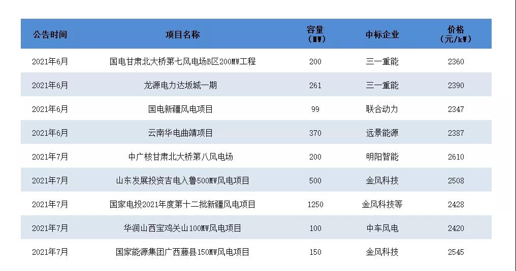 隨著風機大型化的發(fā)展,降本增效已經體現在了今年的風機招標價格上,根據今年風電項目中標情況,三北、西南地區(qū)大型風電項目的風機中標價格已低至2300-2500元/kW,較2020年同期的價格大幅度下降。
