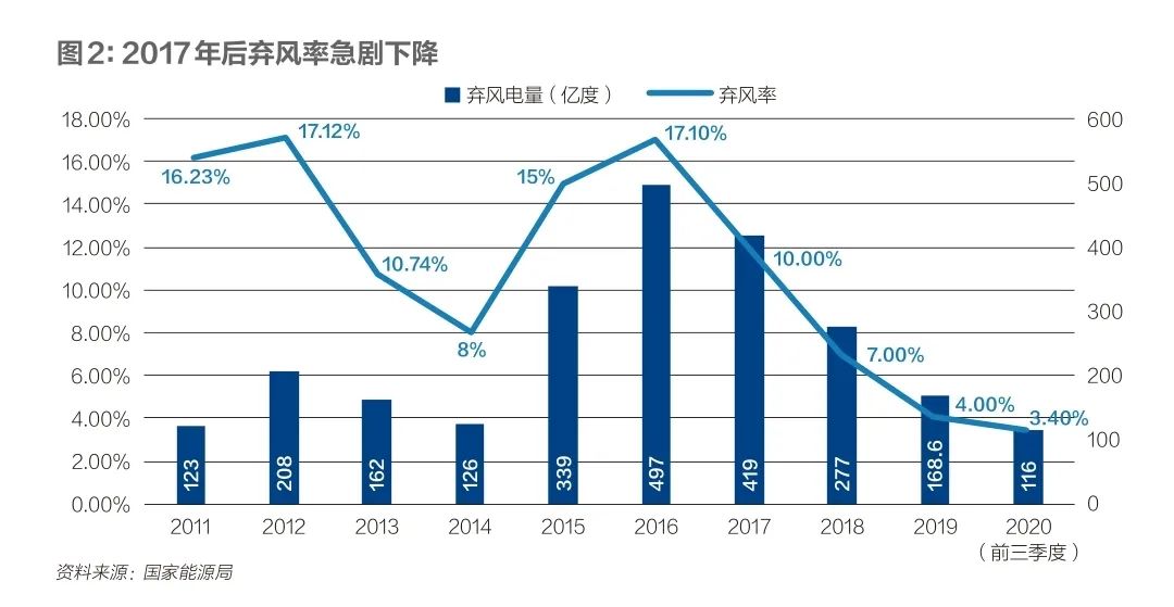棄風(fēng)棄光一度是困擾中國(guó)新能源發(fā)展的關(guān)鍵問題,2016年前后,部分省份棄風(fēng)率一度超過30%,2017年之后雖然迅速緩解,但在未來更高比例的新能源裝機(jī)下,消納隱憂依然揮之不去。