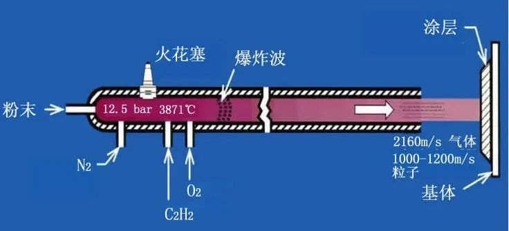 爆炸噴涂技術(shù)的原理是利用氣體爆炸后產(chǎn)生的能量將粉末原料加熱熔化,使其以極高速度沉積在工件表面,形成堅(jiān)固的涂層。該技術(shù)在航空發(fā)動(dòng)機(jī)等關(guān)鍵零部件修復(fù)和耐磨防護(hù)中表現(xiàn)出無(wú)法替代的優(yōu)勢(shì),受到世界范圍的研究和重視,已成為生產(chǎn)高質(zhì)量耐磨涂層最有效的技術(shù)。
