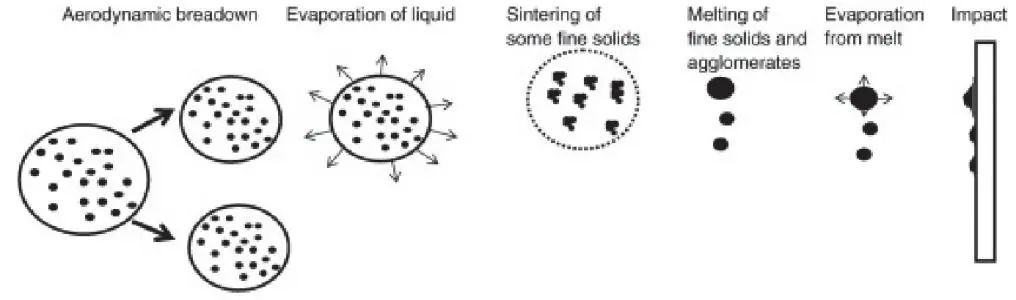 影響熱噴涂涂層性能的主要因素是原料在噴涂焰流中的熔融狀態(tài)(溫度)飛行速度(微粒的動(dòng)能)。在大氣等離子噴涂之后出現(xiàn)的各種熱噴涂技術(shù),無(wú)一不是通過(guò)提高微粒溫度或速度來(lái)獲得性能優(yōu)異的涂層。此外,由于等離子噴涂、爆炸噴涂等技術(shù)無(wú)法使用納米粉體進(jìn)料,在制備納米結(jié)構(gòu)涂層時(shí)只能通過(guò)造粒將其制為微米級(jí)粉體用于噴涂,噴涂工藝和涂層性能均受到限制。因此,研究人員還開(kāi)發(fā)了懸浮液等離子噴涂(SSPS),以便獲得特定組織的納米結(jié)構(gòu)涂層。