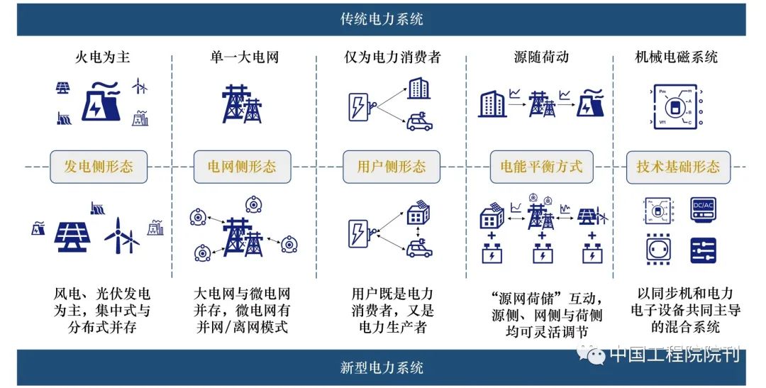 圖2 新型電力系統(tǒng)與傳統(tǒng)電力系統(tǒng)的對比