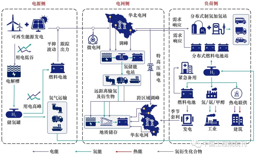 ③氫儲能作為電力系統(tǒng)“源網(wǎng)荷”多側(cè)的關(guān)鍵靈活性資源,可促進“源網(wǎng)荷儲”各環(huán)節(jié)協(xié)調(diào)互動,實現(xiàn)新型電力系統(tǒng)在不同時間尺度上的電力電量平衡;