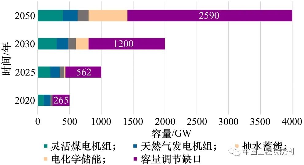 圖4 我國2020—2050年調(diào)峰容量缺口