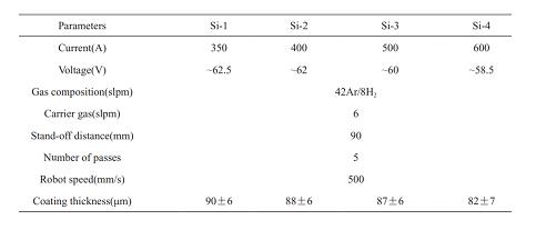 關(guān)鍵詞:大氣等離子噴涂;Si 粘結(jié)層;結(jié)合強(qiáng)度;表面粗糙度