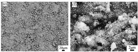 圖 4 Si 粘結(jié)層表面形貌:(a), (b) Si-1;(c), (d) Si-2;(e), (f) Si-3;(g), (h) Si-4