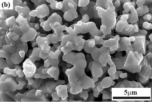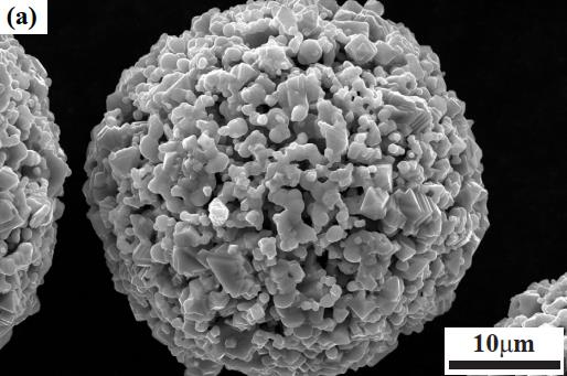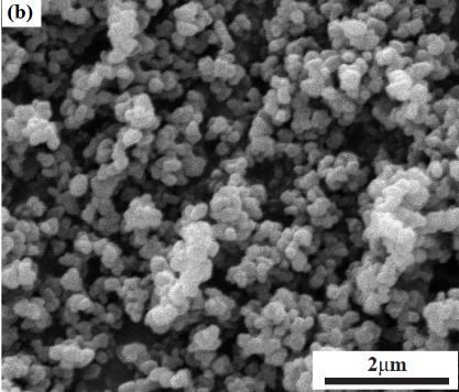 圖 3 Cr2O3-TiO2 復合粉末形貌特征:(a) 低倍;(b) 高倍