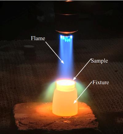 采用掃描電子顯微鏡(Quanta FEG 650 型,荷蘭 FEI 公司) 對 Cr2O3-TiO2 復合粉末( 噴霧造粒、 燒結處理) 及涂層的微觀結構進行表征。采用 X 射線衍射儀( D/max-RC 型, 日本, 掃描范圍為 20~80°) 對粉末和涂層進行物相分析。根據 GB/T 8642-2002《熱噴涂 抗拉結合強度的測定》 測試涂層結合強度。根據 GJB323A-1996《燒蝕材料燒蝕試驗方法》 , 采用氧乙炔火焰對復合涂層進行燒蝕性能測試, 燒蝕參數如表 3 所示。氧乙炔燒蝕示意圖如圖 2 所示。分別采用美國 FLUKE 公司E1RH-F2-L-0-0 型紅外測溫儀和德國 HBM 公司 QUANTUM X 1609 型數據采集系統(tǒng)對試樣燒蝕過程中表面溫度和背部溫度進行監(jiān)控。根據 GB/T 7287-2008《紅外輻射加熱器試驗方法》 ,采用紅外輻射測試儀(IRE-2 型, 武漢產品質量監(jiān)督檢驗所) 對涂層的法向發(fā)射率( 波長2~15 μm)進行測試。測試溫度為400 ℃和 750 ℃。