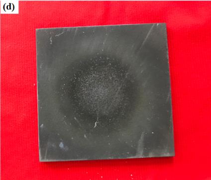 圖 8 涂層燒蝕前后宏觀形貌:(a) 納米 YSZ 涂層燒蝕前;(b) 納米 YSZ 涂層燒蝕后;(c) Cr2O3-TiO2/nano-YSZ 復合涂層燒蝕前;(d) Cr2O3-TiO2/nano-YSZ 復合涂層燒蝕后