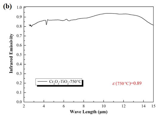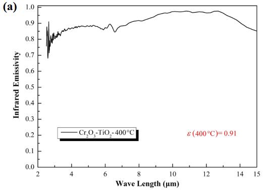 (4) Cr2O3-TiO2/nano-YSZ 復合涂層在 400 ℃和 750 ℃法向發(fā)射率(波長 2~15 μm) 分別為 0.91和 0.89。