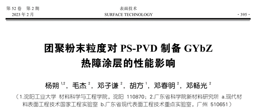 楊朔,毛杰,鄧子謙,.團(tuán)聚粉末粒度對(duì)PS-PVD 制備GYbZ 熱障涂層的性能影響[J].表面技術(shù), 2023, 52(2): 395-403.